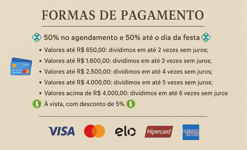 Nossa equipe chega em média, 1 hora antes do horário de entrada, para evitar imprevistos e tudo sair como combinado. Dependendo do personagem, do tempo de preparação e maquiagem, podemos chegar com até 3 horas de antecedência.