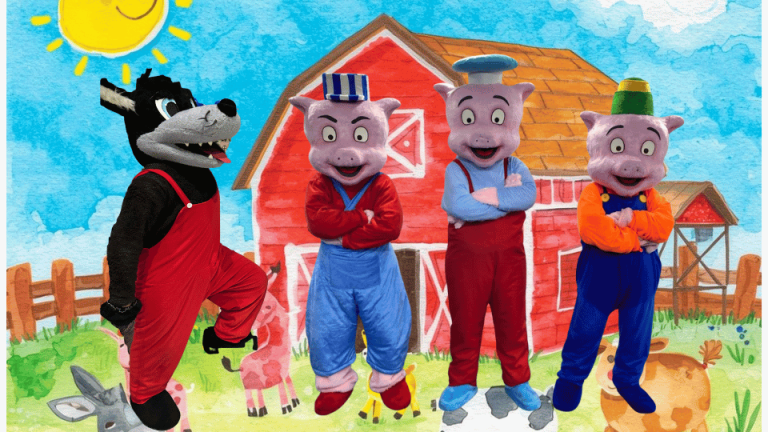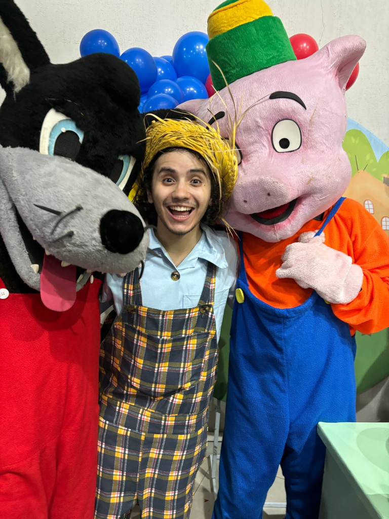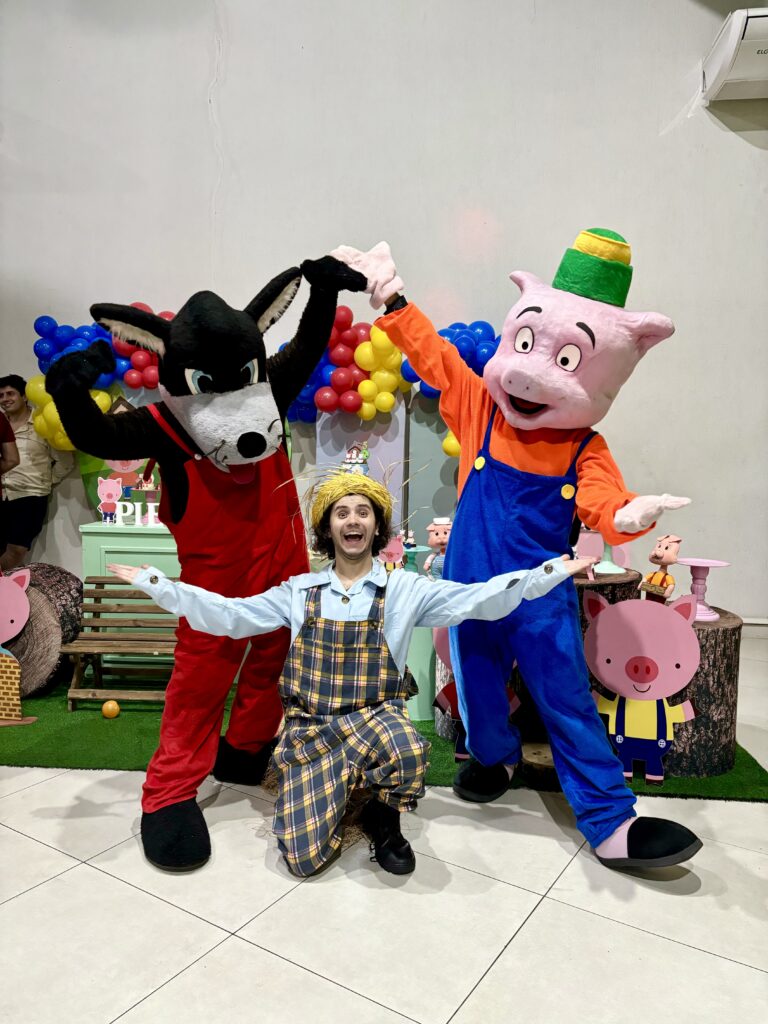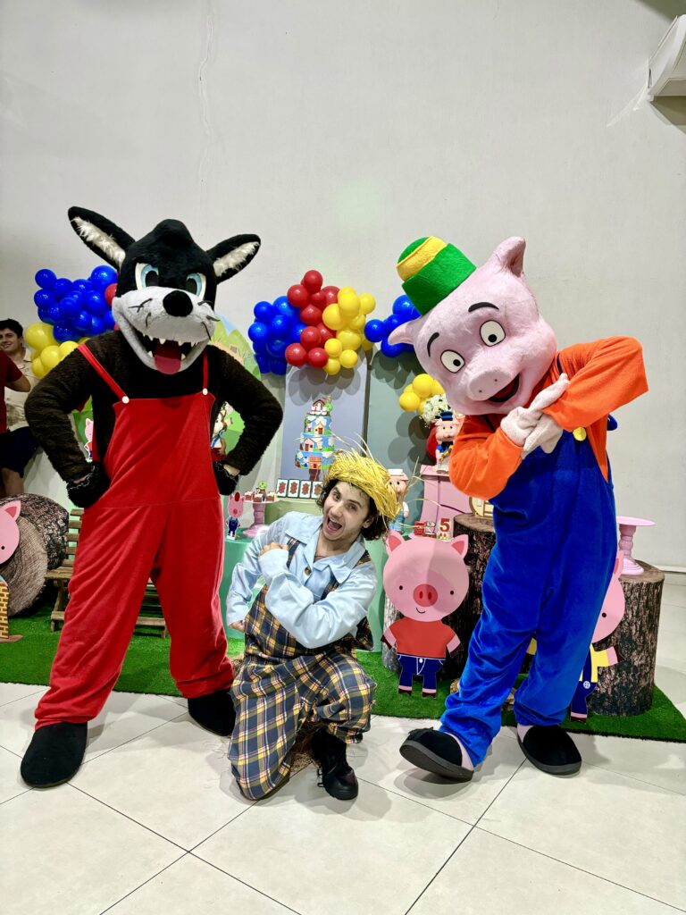 Festa tema os três porquinhos e lobo mau para contratar para festas de aniversario. Personagens vivos dos 3 porquinhos , disponível para festas infantis na cidade de São Paulo. Porquinhos e Lobo mau. Quer fazer um show para as crianças do tema os 3 porquinhos?