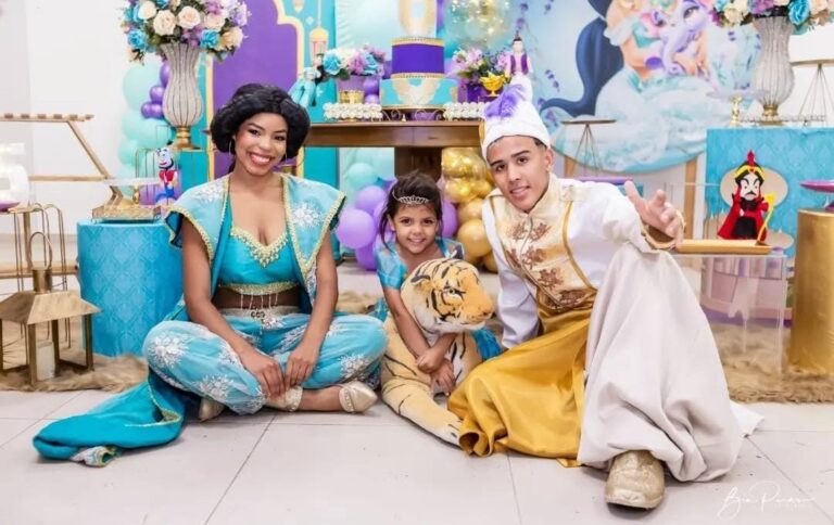 Fazer uma festa para crianças tema Aladdin, com personagens do desenho Aladdin, jasmine, Abu, Genio da lampada. Show com música um mundo ideal para apresentar em festa infantil em SP.