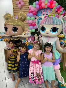 Festa tema LOL surprise com personagens vivos animados. Contratar LOL para festa em sp. Show LOL com queen bee , unicórnio, sereia, show de bonecas raras para aniversário infantil. Personagens LOL para festa.